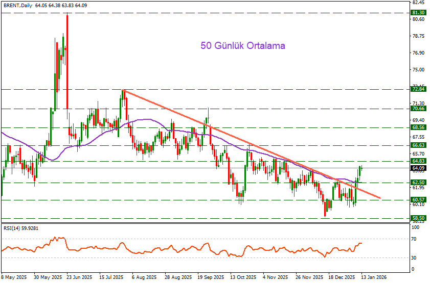 Brent petrolün yukarı yönlü tepkiler almayı sürdürmesi durumunda 64.83 bölgesi direnç olarak test edilebilir. 64.83 bölgesinin yukarı yönlü aşılması durumunda yükselişler hız kazanabilir.
