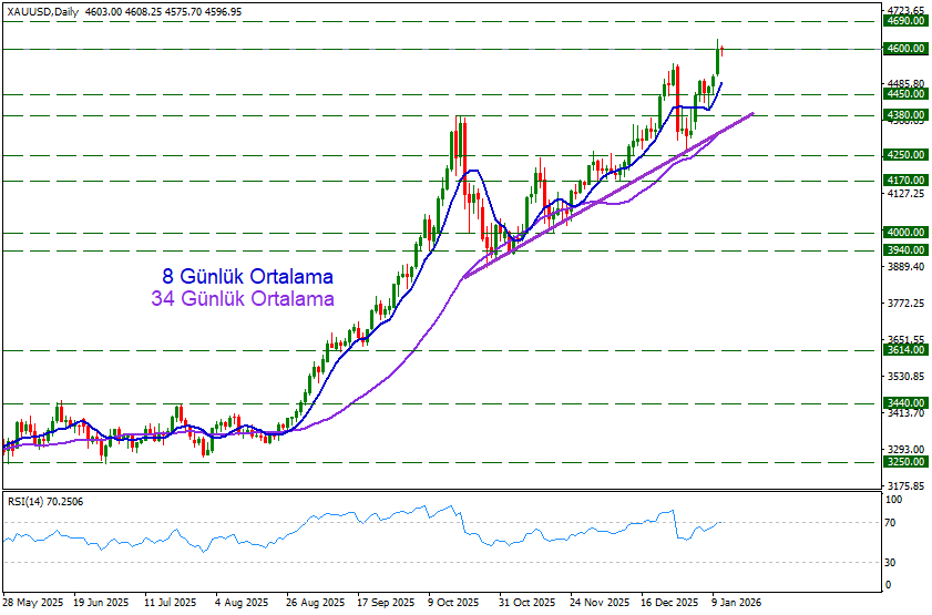 Jeopolitik gerilimler ve FED’in bağımsızlığına yönelik endişeler güvenli liman ons altın talebini artırarak yeni haftanın ilk gününde 4630 seviyesi ile yeni rekor oluşturdu.
