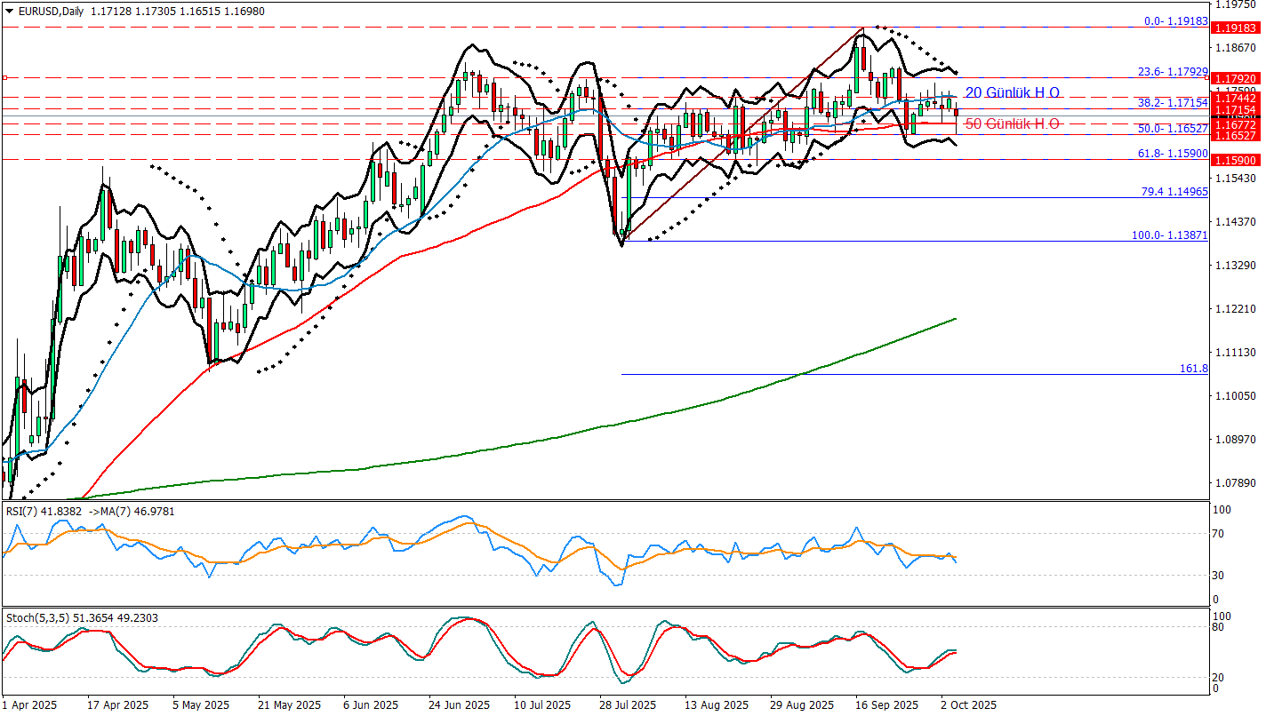 Fransa’da siyasi belirsizlik derinleşiyor. Yeni Başbakan Sébastien Lecornu ve kabinesi, göreve geldikten yalnızca birkaç saat sonra istifasını sundu. Lecornu’nun kabine listesini açıklamasının hemen ardından gelen bu karar, Fransız siyaset tarihinde en kısa süre görev yapan hükümet olarak kayıtlara geçti ve ülkedeki mevcut politik krizi daha da derinleştirdi. Bu durum EUR değerinde sert bir düşüşe sebep oldu. Parite gün içinde bir ara 1.1652 desteğine kadar geri çekildi sonrasında bu seviyeden biraz tepki alımları gelince şuanda 1.1699 seviyesine kadar yükseldi. Şu anda 50 günlük hareketli ortalamanın üstüne çıkmayı başaran EUR olası bir geri çekilmede ortalamadan tekrar güç alıp 1.1715 direncini kırmak için testlere başlayabilir.