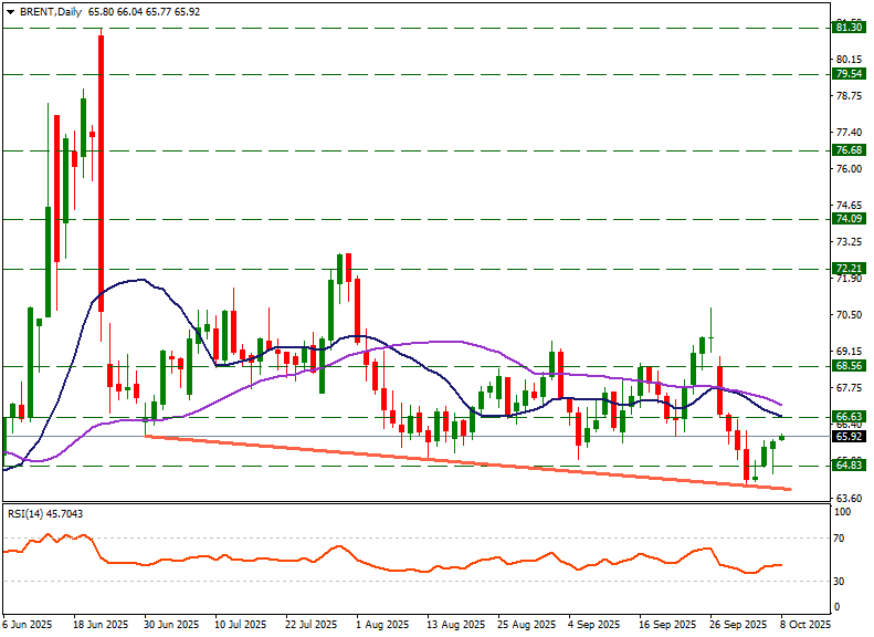 Brent petrolde bu hafta etkili olan pozitif hareketler hızını yavaşlatarak geçerli kalmaya devam ediyor. Bugün Asya seansındaki kısıtlı hareketler brent petrolü 65.92 bölgesinde tutuyor. Yukarı yönlü hareketlerin hız kazanması durumunda 66.63 bölgesi direnç oluşturabilir.