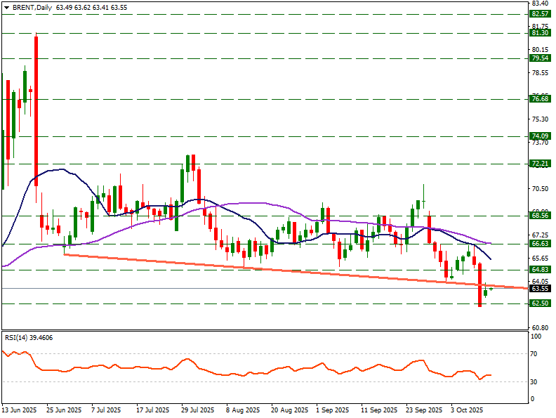 Geçtiğimiz günü 63.39 seviyesinde pozitif kapatan brent petrol, yeni işlem gününün Asya seansını oldukça sakin geçirdi. Fiyatlamalar en yüksek 63.62, en düşük 63.38 seviyesini gördü. Aynı zamanda bu bölge hafif eğimli düşüş trend çizgisini direnç olarak test ediyor. Bu trendin aşılması durumunda 64.83 bölgesi direnç olarak takip edilebilir. Aşağı yönlü baskılarda ise 63.50 bölgesi destek oluşturabilir.