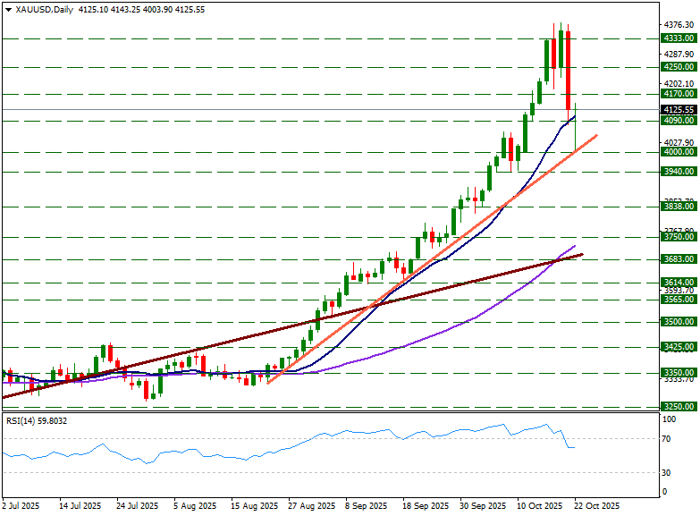 Ons altın geçtiğimiz gün yaşanan güçlü düşüşler sonrasında günü 4125 seviyesinde kapattı. Yeni işlem gününün Asya seansında düşüş ivmesi önce 4003 seviyesine kadar geçerli kalmaya devam etti. Ardından 4000 bölgesinden ve yükseliş trend çizgisinden alınan destekle günlük açılış bölgesine geri yükseldi. Yükselişlerin devamında 4170 bölgesi direnç oluşturabilir. Aşağı yönlü fiyatlamaların tekrar yükseliş trend çizgisi destek oluşturabilir.