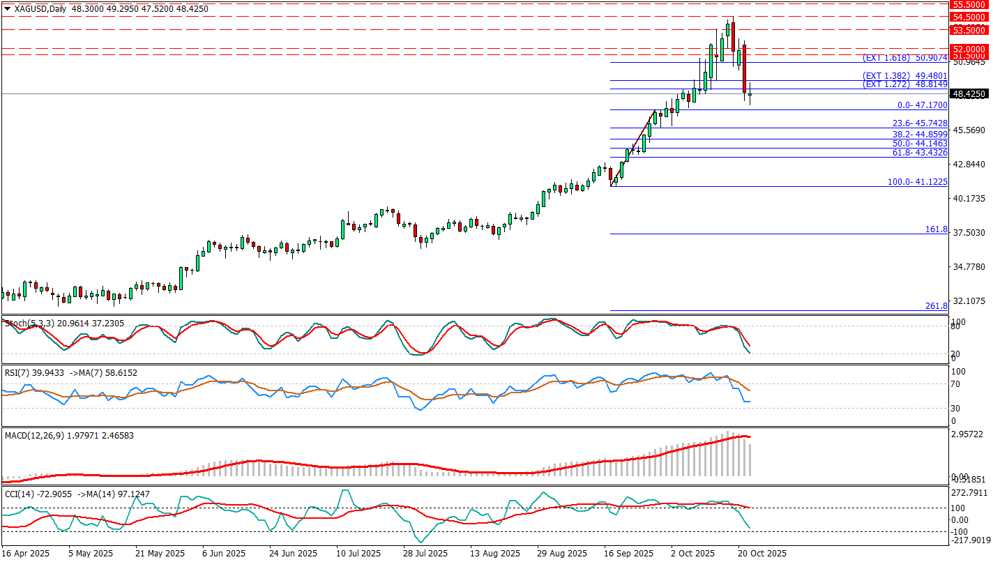 Ons Gümüş’te görülen sert geri çekilme, yatırımcıların güvenli liman talebini azaltarak riskli varlıklara yönelmesiyle ivme kazandı. ABD-Çin arasındaki ticari anlaşmazlıkların çözüme ulaşacağına yönelik artan iyimserlik, piyasalarda risk iştahını canlandırırken; bu durum dolar endeksinin güçlenmesine ve dolayısıyla gümüş üzerinde aşağı yönlü baskının artmasına neden oldu.