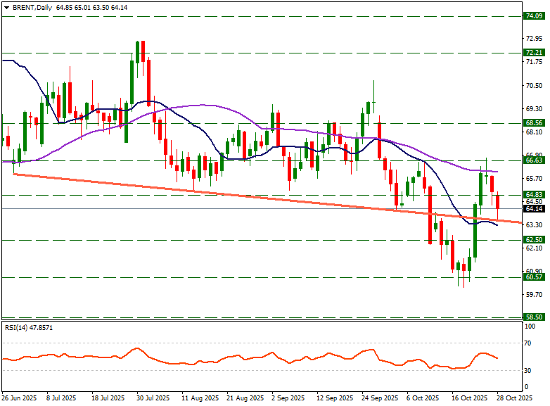 Brent petrol yeni haftada aşağı yönlü baskılar almaya devam ediyor. Geçtiğimiz gün 64.83 desteğini aşağı yönlü kırmaya zorlayan brent petrol, bugün bu desteğin altında inerek 63.50 seviyesine kadar geriledi. 63.50 bölgesinde düşüş trend çizgisi destek oluşturarak yukarı yönlü tepkiler oluşturdu. Anlık fiyatlamalar 64.14 bölgesinde negatif görünümünü sürdürüyor. Aşağı yönlü fiyatlamaların devamında düşüş trend çizgisinin kırılması durumunda 62.50 bölgesi bir sonraki destek olarak takip edilebilir.