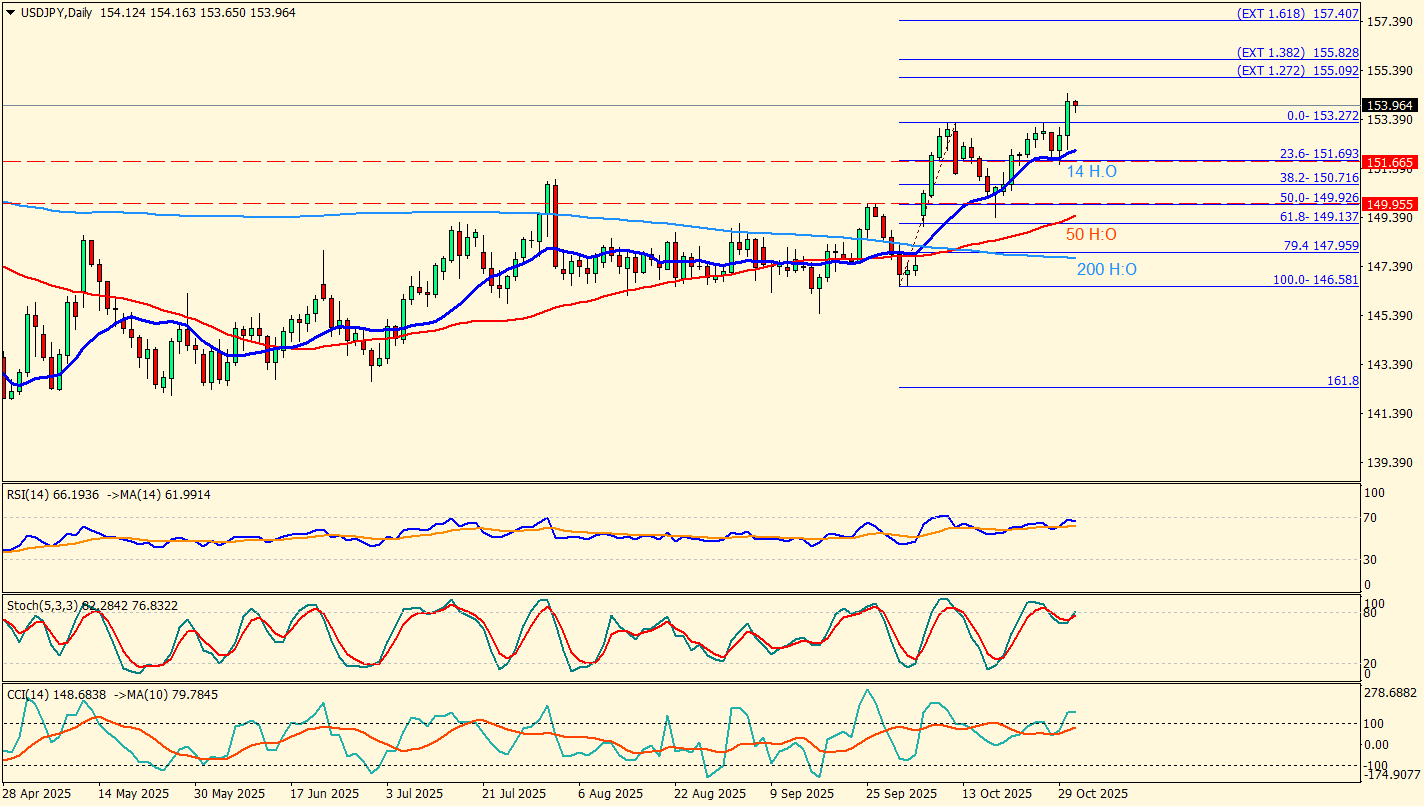 Teknik açıdan parite 153,27 seviyesindeki Fibonacci 0.0 desteğinin hemen üzerinde işlem görüyor. Fiyat, 14 günlük hareketli ortalama (151,69) üzerinde tutunmayı sürdürürken, RSI 65 seviyesinde ve Stokastik göstergesi aşırı alım bölgesine yakın. Golden Cross sonrası gelen bu yükseliş ivmesinin etkisiyle kısa vadede 155– 156 direnç aralığının test edilme potansiyeli bulunuyor.