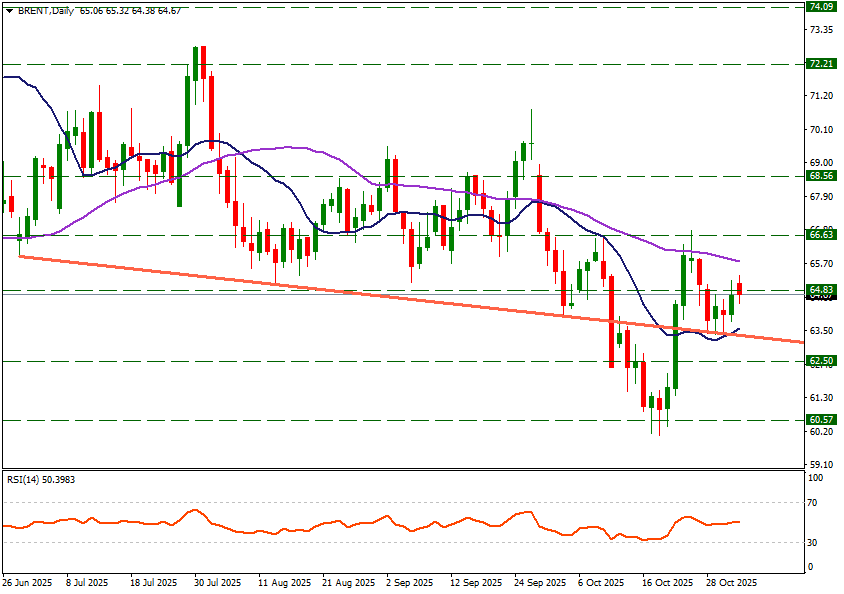 OPEC+ hafta sonu gerçekleştirdiği toplantıda petrol üretimini günlük 137.000 varil artırma kararı aldı. Ek olarak 2026’nın ilk çeyreği için üretim artışlarına ara verilmesi de kararlaştırıldı. Geçtiğimiz haftayı 64.65 seviyesinde kapatan brent petrol, yeni haftaya 65.06 seviyesinde yukarı yönlü gap ile giriş yaptı. Gün içindeki yükseliş denemeleri 65.32 seviyesini gündeme getirdi. Ardından gelen düşüşler 64.38 seviyesine kadar etkili oldu. Brent petrol şu sıralar günlük görünümde negatif fiyatlamalarla 64.67 bölgesinde işlem görüyor. RSI göstergesi 50 merkezinde kalırken fiyatlamalar 14 günlük ortalama üzerinde ve 50 günlük ortalamanın altında kalıyor.
