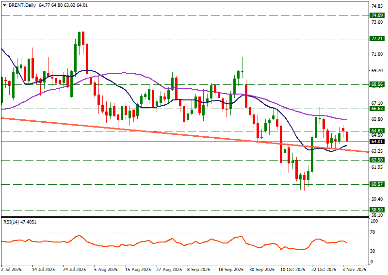 Brent petrol haftanın ilk gününde 64.83 bölgesi üzerine çıkış denemelerinde kalıcılık sağlayamadı. Bugün 64.83 bölgesi altına inen fiyatlar gün içinde 63.82 seviyesine kadar etkili oldu. Anlık fiyatlamalar 64.01 bölgesinde işlem görüyor. Aşağı yönlü fiyatlamaların devamında düşüş trend çizgisi destek oluşturabilir. Yukarı yönde ise 64.83 bölgesi direnç oluşturabilir.