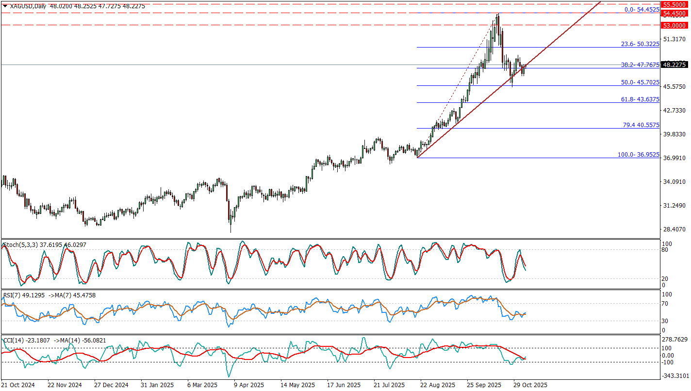 FED’e dair bu temkinli mesajlar ve ABD’den gelen güçlü makroekonomik veriler dolar endeksini yukarı taşırken, getirisi olmayan değerli metaller üzerinde baskı yarattı. Bu durumun etkisiyle gümüş fiyatı ons başına 48 dolar seviyesinin altına gerilemişti.