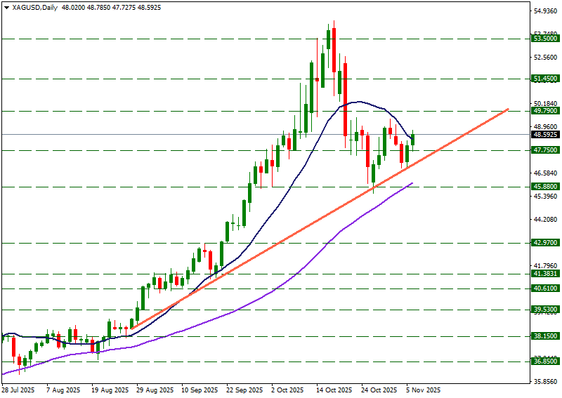 Ons gümüş geçtiğimiz gün yükseliş trend çizgisinden aldığı destekle 47.75 direncini aşarak günü 47.98 seviyesinde kapattı. Yeni işlem günündeki satış denemelerinde 47.75 bölgesi bu kez destek oluşturarak yukarı yönlü tepkileri güçlendirdi. Gün içinde 14 günlük hareketli ortalamayı aşan ons gümüş 48.78 seviyesine kadar yükselişler gördü. Fiyatlamalar 14 günlük hareketli ortalama üzerinde kalmaya devam ediyor. Yukarı yönlü hareketlerin devamında 49.79 bölgesi direnç olarak takip edilebilir. Aşağı yönde ise yükseliş trend çizgisi ana destek olarak izlenebilir. Trendin aşağı yönlü kırılması düşüş eğimini gündeme getirebilir.
