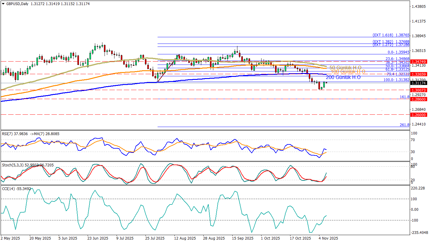 İngiltere Merkez Bankası, faiz oranını %4 seviyesinde tutarken oylama 5’e 4 sonuçlandı; Başkan Andrew Bailey faiz indirimine geçmeden önce daha fazla enflasyon ve talep verisi görmek istediğini söyledi. Toplantı öncesinde sterlin, beklenen Kasım bütçesinde vergi artışları ve olası faiz indirimi ihtimali nedeniyle yedi ayın en düşük seviyelerine gerilemişti. ABD’de resmi tarım dışı istihdam verilerinin hükümetin kapanması nedeniyle açıklanamaması üzerine özel sektör araştırmaları, işten çıkarma ve iş kaybı verilerinin zayıfladığını gösterdi. Bu gelişme ABD dolarını baskıladı ve Fed’in Aralık ayında faiz indirmesine dair beklentileri %70’e yükseltti. Doların zayıflaması, BoE kararının ardından toparlanan sterline destek vererek GBP/USD’nin yeniden yükselmesine katkıda bulundu.