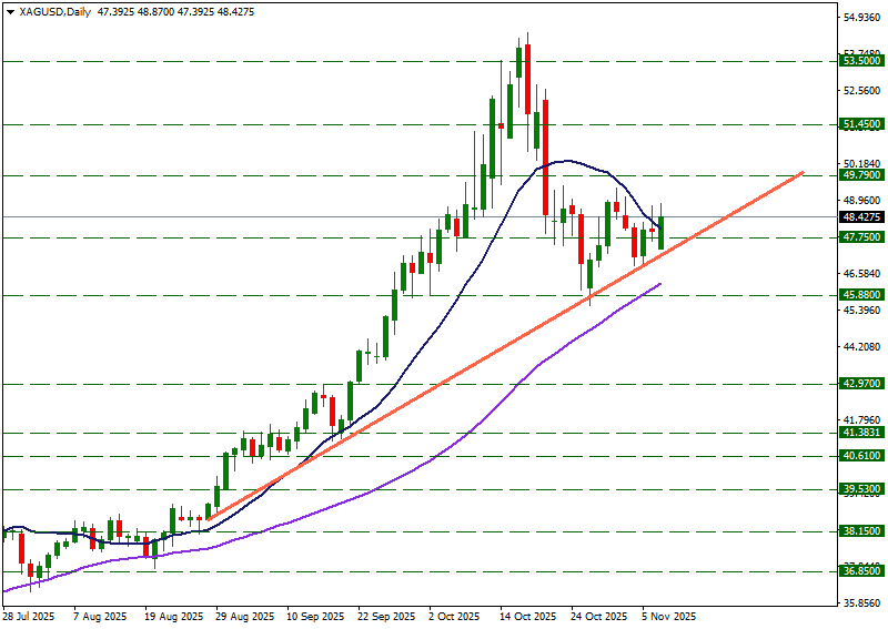 Geçtiğimiz günü 47.98 seviyesinde kapatan ons gümüş, haftanın son işlem gününe 47.39 seviyesinde aşağı yönlü gapli giriş yaptı. Negatif başlangıç sonrasında gün boyunca yukarı yönlü fiyatlamalar etkili oldu. Önce 47.75 direnci, ardından 14 günlük hareketli ortalama bölgesi aşılarak 48.87 seviyesine kadar yükselişler gündeme geldi. Fiyatlamalar şu sıralar 48.42 bölgesinde pozitif görünümünü koruyor. Yukarı yönlü fiyatlamaların devamında 49.79 bölgesi direnç olarak takip edilebilir. Aşağı yönde ise yükseliş trend çizgisi destek olarak geçerliliğini koruyabilir.
