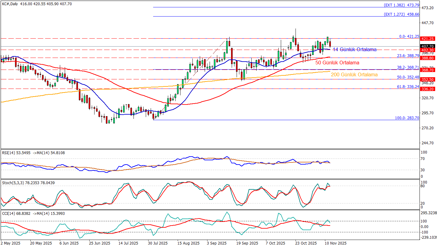 Kahve tarafında son günlerde fiyatlamayı şekillendiren tabloyu özetlersek; Brezilya Reali’ndeki güçlenme, üreticinin satış iştahını azaltarak ihracat akışını yavaşlatıyor ve bu kanal üzerinden fiyatlara pozitif yansırken, ABD’nin Brezilya’dan yapılan kahve ithalatına uyguladığı yüksek gümrük vergilerini aşağı çekebileceği yönündeki sinyaller, ABD pazarındaki sıkışıklığın gevşeyebileceği beklentisiyle kahve için negatif bir unsur olarak öne çıkıyor. Buna ek olarak, ICO raporlarının işaret ettiği düşük ICE stokları ve son yıllardaki arz açıkları yüksek fiyatları yapısal olarak desteklemekte. Tüm bu bileşenler Kahve fiyatının 14 günlük ortalamasının üzerinde kalmasını sağlıyor.