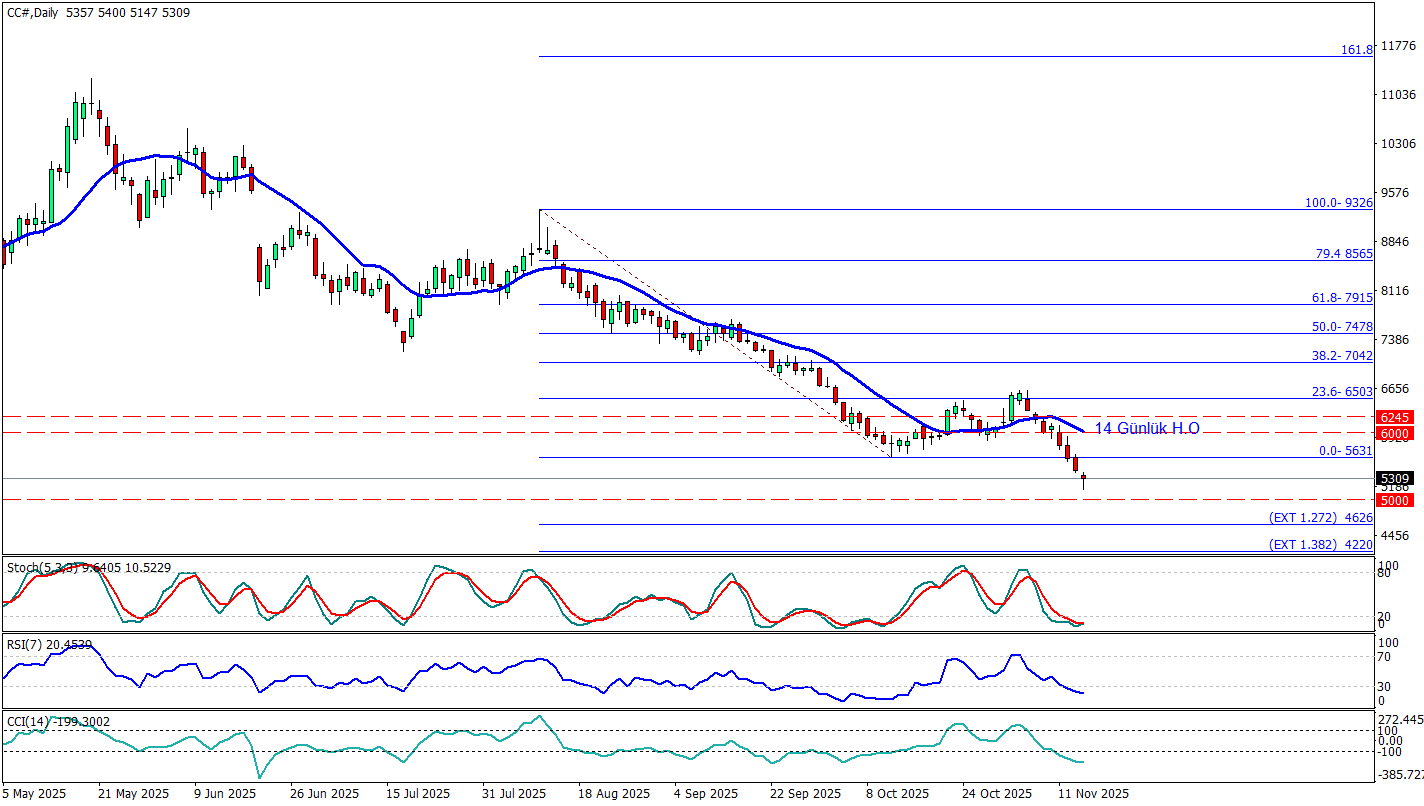 ABD’de Trump yönetiminin kahve, muz gibi tarım ürünlerinde gümrük vergilerini düşürmeye hazırlanması ve Hazine Bakanı Bessent’in “önümüzdeki birkaç gün içinde bu ürünlerde önemli tarife indirimleri” mesajı oldu; piyasa bunu kakao gibi ABD’de yetişmeyen ürünleri de kapsayan geniş bir sepet olarak okudu ve NY kakao kontratını 1,75 yıllık dip seviyelere kadar itti.Aynı zamanda, Fildişi Sahili ve Gana’dan gelen haberlerde ana ürün hasadının iyi gittiği, hava koşullarının baklaların gelişimini desteklediği ve pod sayısının 5 yıllık ortalamanın %7 üzerinde olduğu açıklanarak “bol rekolte” beklentisini güçlendirdi; bu da arz normalleşiyor algısıyla risk primini aşağı çekti. Buna karşın, Fildişi Sahili’nin 1 Ekim–8 Kasım dönemindeki sevkiyatlarının geçen yıla göre %9 düşmesi, Nijerya’da 2025/26 üretimi için %11 civarında düşüş beklenmesi ve ICE depolarındaki stokların 7,5 ayın en düşük seviyelerine inmesi, yapısal arz sıkılığının tam çözülmediğini göstererek önümüzdeki günlerde düşüşü sınırlayabilecek en önemli parametre olarak öne çıkıyor diyebiliriz.
