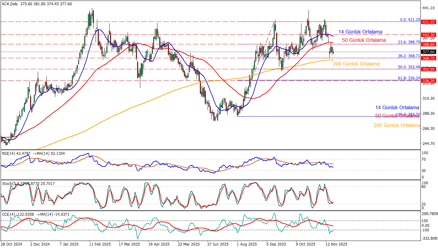 Grafikteki son görünüm, güçlü yükseliş fazının ardından fiyatın kısa vadede soluklanıp dalgalı bir konsolidasyona geçtiğini gösteriyor; bu geri çekilme/denge arayışı tarafında son haftada Brezilya’dan gelen daha iyi yağış tahminleri ve 2025/26 üretimine dair toparlanma beklentileri kâr realizasyonlarını tetiklerken, uzun vadeli arz perspektifi de piyasayı temkinli tutuyor. Bununla birlikte ABD’nin Brezilya menşeli kahveye yönelik yüksek tarifeleri nedeniyle ticaret akışlarının kayması ve ICE’de sertifikalı Arabica stoklarının tarihi düşük seviyelere gerilemesi, fiziksel arzın hâlâ sıkı olduğuna işaret ederek düşüşleri sınırlayan ana destekleyici unsur olarak öne çıkıyor. Orta-uzun vadede 2026/27 sezonu için küresel piyasada belirgin bir arz fazlası beklentisi ve Brezilya’da güçlü/rekor rekolte öngörüsü, “arz normalleşmesi” temasını diri tutarak yükselişlerin hızını kesebilecek temel risk olmaya devam ediyor.