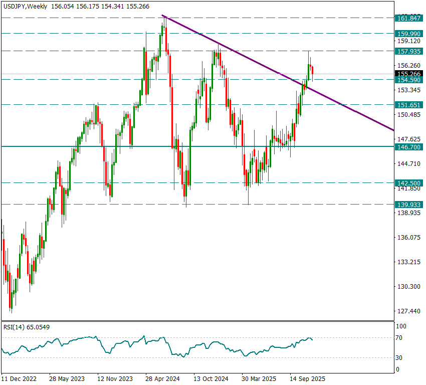 USDJPY paritesi, 161.85’den gelen 1.5 yıllık downtrend çizgisine temasının ardından tekrar tepki aldı. Aralık ayı içerisindeki BOJ toplantısında faiz artışı beklenirken, FED’den faiz indirim beklentisi birleşince paritede Yen lehine hareketler takip ediliyor. Ancak bu hareketlerin kalıcı olması için 154.60 desteğinin kırıldığını teyit etmek gerekecek.