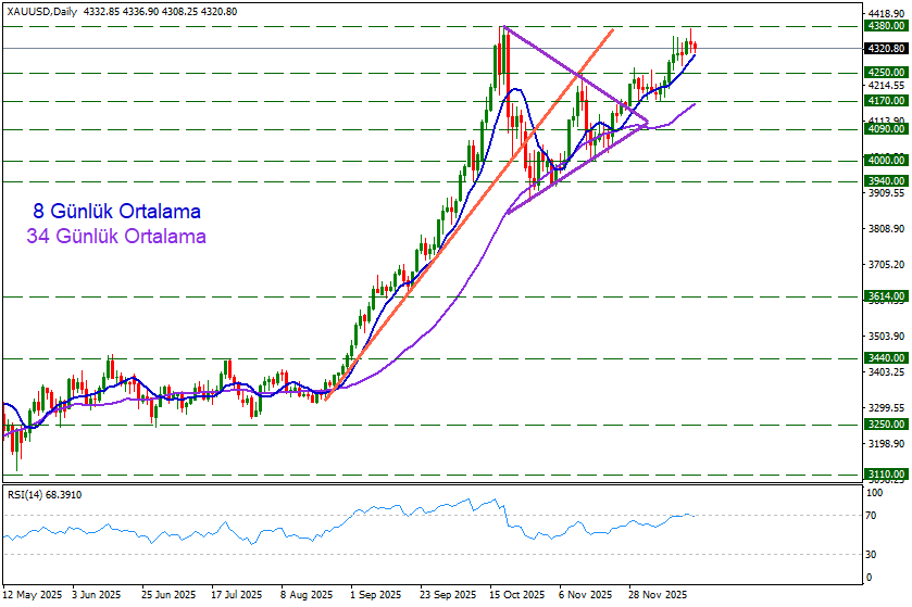 Gün içinde kar satışlarının güç kazanması durumunda 4250 bölgesi destek olarak takip edilebilir. Yukarı yönlü hareketlerde ise 4380 zirvesinin aşılması durumunda yükselişler hız kazanabilir.