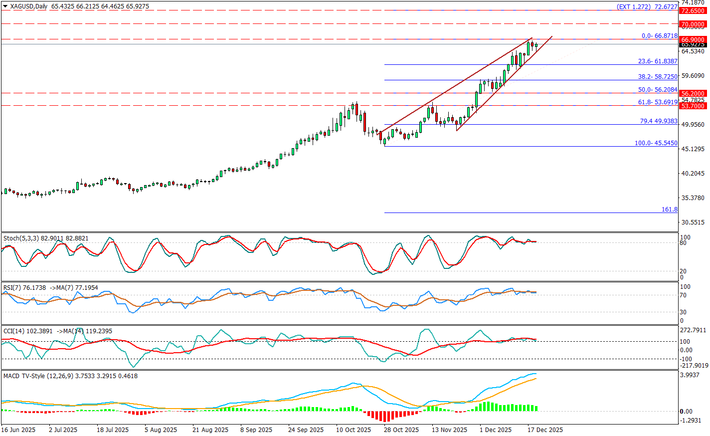 Ons gümüş grafiğinde ana trendin yukarı yönlü kaldığı görülürken, fiyatın yükselen kanal/kama içinde ilerleyerek 66.90 bölgesine yaklaştıktan sonra 65.70 sınırlı bir geri çekilme yaşadığı görülüyor Yukarıda 66.90–67.00 bandı kısa vadeli ilk kritik direnç konumunda; bu bölgenin aşılması halinde 70.00 psikolojik seviyesi gündeme gelebilir. Aşağıda ise trend yapısını koruyan ana destekler sırasıyla 61.83 (Fibo 23.6) ve 58.72 (Fibo 38.2) seviyelerinde izlenirken, daha sert düzeltmelerde 56.20–53.70 bandı orta vadeli “trend bozuluyor mu?” sorusunun cevabını verecek bölge olarak öne çıkıyor. Göstergeler yükselişin momentumunu koruduğunu ancak kısa vadede yorulma sinyali verdiğini gösteriyor: Stokastik 80 üzeri bölgede yataylaşırken, RSI 75 ile güçlü, CCI pozitif bölgede; MACD ise pozitif bölgede genişleyerek ana yükseliş ivmesini destekliyor. Bu görünümde, 66.90 üzerinde kalıcılık yeni zirve denemelerini tetikleyebilir.