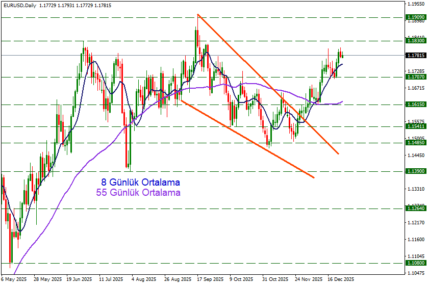 Paritede euro lehine fiyatlamaların güç kazanması durumunda 1.1830 bölgesi direnç oluşturabilir. Aşağı yönlü hareketlerde ise 1.1707 bölgesi ana destek olarak takip edilebilir.