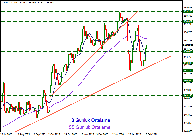 Geçtiğimiz gün 154.40 direnci aşıldı ve günlük kapanış 154.78 seviyesinde tamamlandı.