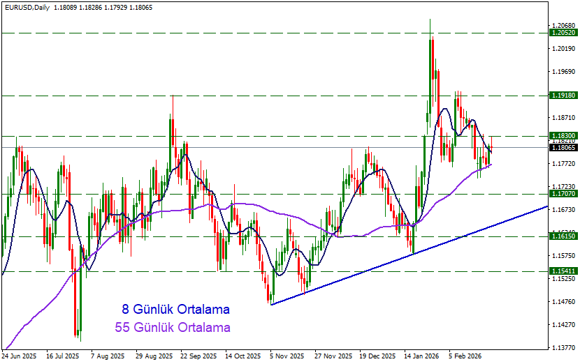 Anlık fiyatlamalar ise günlük açılış bölgesine gerileyerek 1.1806 civarında işlem görüyor.