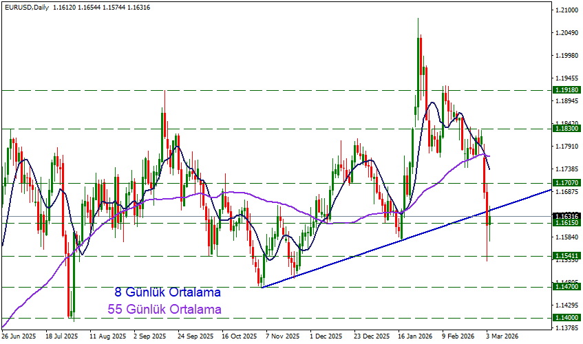 Destekler: 1.1615 – 1.1541 – 1.1470