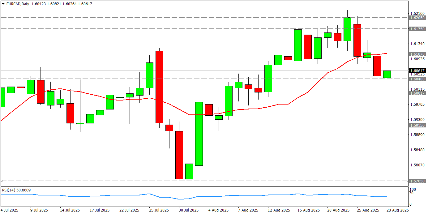 EURCAD günlük grafikte şuanda 14 günlük ortalama ve 1.6044 destek seviyesinin arasında hareket ediyor. Önündeki ilk direnç seviyesi olan 1.6107 seviyesini bugün henüz test etmeyi başaramadı bunun sebepleri arasında Avrupa’daki siyasi gündem belirsizlikleri etkili olmuş görünüyor. Bu sebeple 2 kırmızı mum yakan Euro’nun tekrar kendini toparlaması için 1.6044 seviyesi kritik öneme sahip.