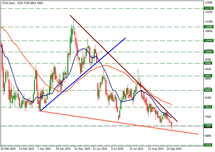 Mayıs ayından itibaren başlayan düşüş ivmesi yeni haftada kritik bir bölgeyi test etti. Güne 7230 seviyesinde giriş yapan kakao, önce 7099 desteğini aşağı yönlü kırdı. Ardından 7823 bölgesinden gelen hafif eğimli düşüş trend çizgisini destek olarak test etti. Anlık fiyatlamalar 7059 bölgesinde işlem görüyor. Aşağı yönlü fiyatlamaların düşüş trend çizgisini kırdığı taktirde negatif baskılar güç kazanabilir.
