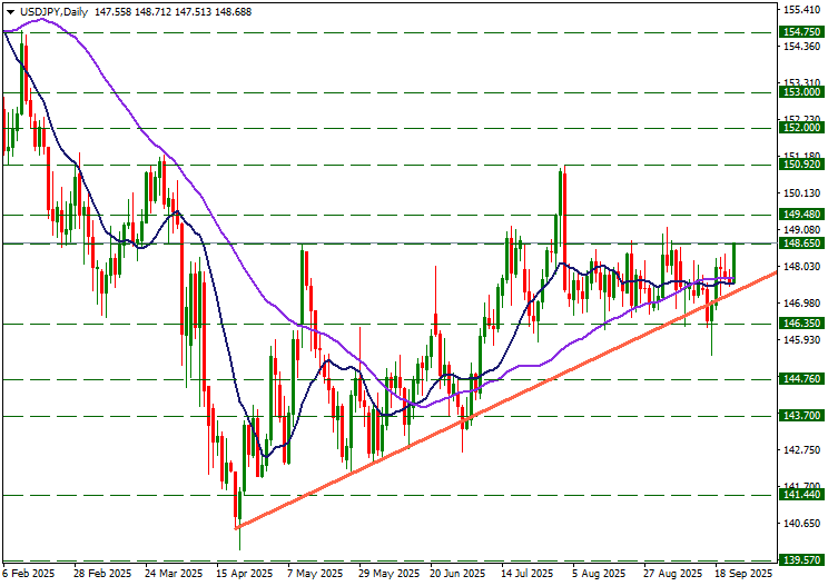 Güne 147.55 seviyesinde giriş yapan USDJPY paritesi dolar endeksindeki pozitif hareketlerin etkisiyle yen aleyhine tepkiler alarak yükseldi. Fiyatlamalar şu sıralar uzun zamandır geçerli olan yatay bölgenin üst bandını 148.65 direncinde test ediyor. Bu direncin aşılması durumunda 149.48 bölgesi bir sonraki direnç olarak takip edilebilir. Olası geri çekilmelerde ise yükseliş trend çizgisi destek oluşturabilir.