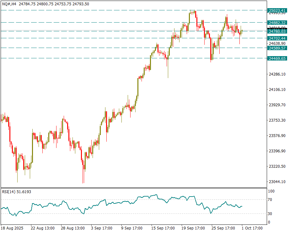 Nasdaq vadeli borsa endeksi kademeli geri çekilmeye devam ediyor. Bu geri çekilme ile birlikte 24780 seviyesinin altına sarktı ve bu seviye artık dirençtir. Teknik olarak yukarıda 24882 aşağıda ise 24702 seviyeleri iki önemli direnç ve destek noktalarıdır. Dar bantta bu seviyeler takip edilebilir.