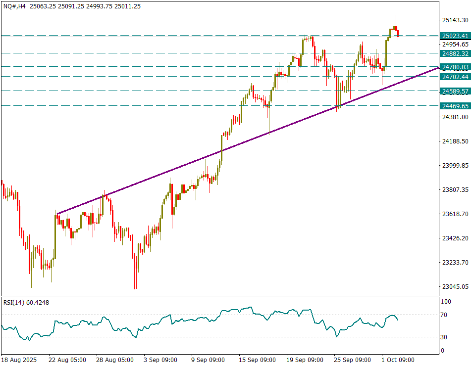Nasdaq vadeli borsa endeksi gün içinde rekor tazeledi. Ancak FED üyesi Logan’ın faiz indirimlerine dair temkinli olmak üzerine açıklama yapması piyasanın moralini hafif bozdu ve Nasdaq rekor bölgeden hafif geriledi. 25025 desteği ilk önemli destek. Bu seviye altında düşüş derinleşebilir ve ilk destek olarak 24700 seviyesi takip edilebilir.