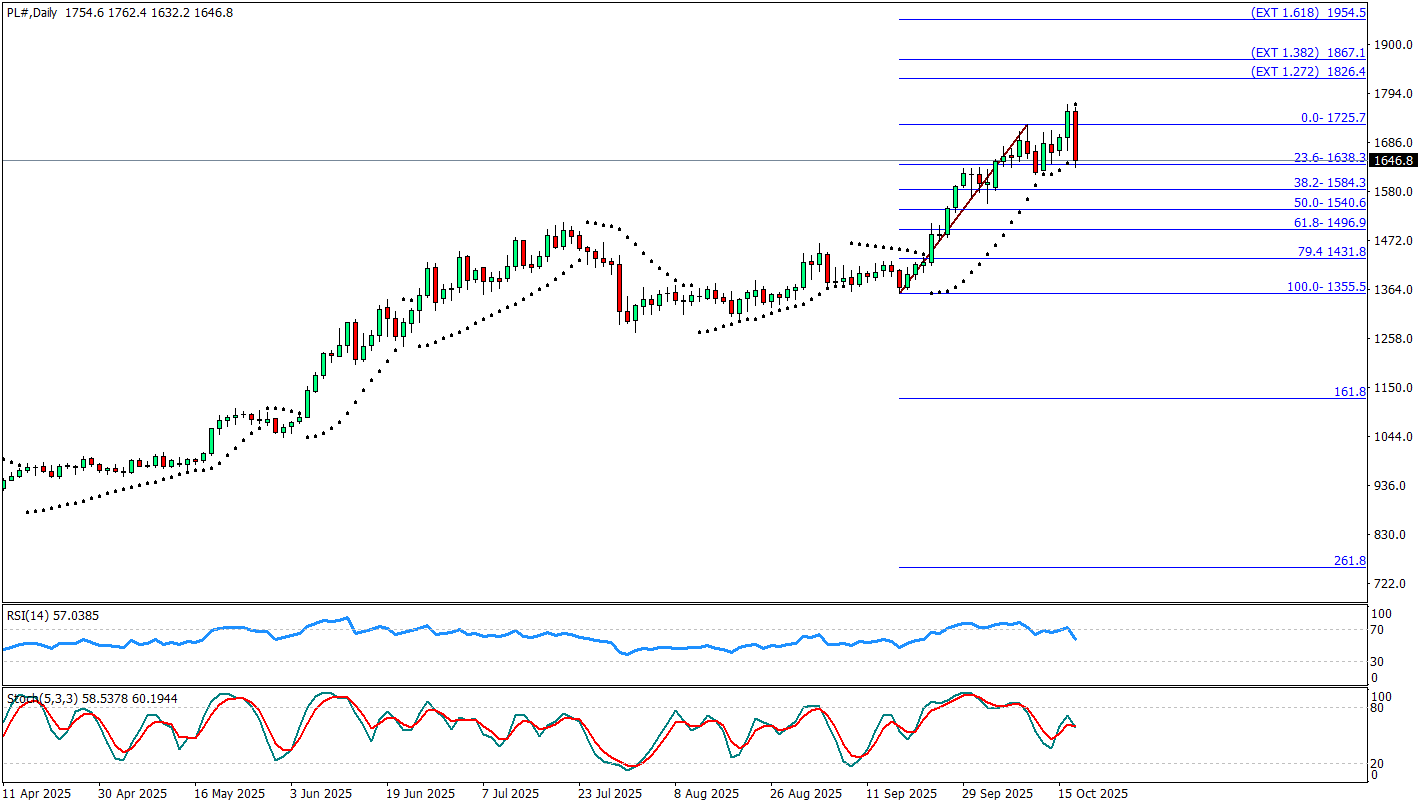 Teknik olarak bakıldığında, platin fiyatı son dönemdeki sert yükselişin ardından 1.754 dolar seviyesinden gelen kâr satışlarıyla 1.630 dolar civarına kadar geri çekildi. Bu hareket, yükselen trend içinde kısa vadeli bir düzeltme evresi olarak değerlendiriliyor. 1.638 dolar (23,6% Fibonacci) desteği kritik konumda olup, bu seviyenin altına inilmesi durumunda 1.584 ve 1.540 dolar seviyeleri gündeme gelebilir. Öte yandan, tepki alımlarında 1.725 dolar direnci izleniyor. RSI göstergesi 55 civarında nötr seyir izlerken, Stokastik osilatörün aşağı yönlü eğilimi kısa vadede zayıf momentuma işaret ediyor. Genel görünüm, temel taraftaki arz açığı ve güçlü talep dinamikleriyle desteklenen orta vadeli yükseliş trendinin, kısa vadeli teknik düzeltmelere rağmen korunduğunu gösteriyor.