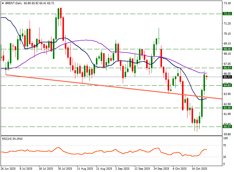 Brent petrol, Trump’ın Rus petrolüne yaptırım uygulaması sebebiyle geçtiğimiz iki günde 5 dolara yakın yükselişler gördü. Yükselişler 50 günlük hareketli ortalama üzerini test etmesinin ardından hafif geri çekilmelerle 50 günlük hareketli ortalamanın altında 65.95 seviyesinde günün kapattı. Kuveyt Petrol Bakanı’nın piyasada oluşabilecek petrol açıkları için gerekirse üretim kesintilerinin azaltılması ile önlem alınabileceğini bildirmesi sonrasında haftanın son işlem gününe başlarken brent petrol yükselişini kesti. Şu sıralar fiyatlamalar 65.72 bölgesinde hafif satıcılı bir şekilde işlem görüyor. Yükselişlerin tekrar etkili olması durumunda 66.63 bölgesi direnç oluşturabilir. Aşağı yönlü baskılarda ise 64.83 bölgesi destek oluşturabilir.