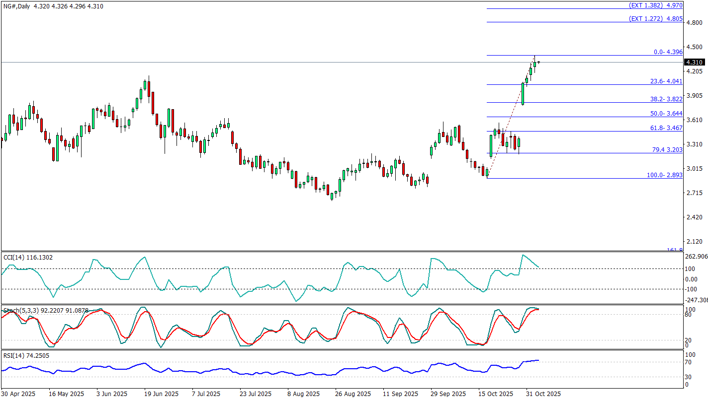 Doğalgaz, Kasım ayında artan ısıtma talebi beklentileri ve daha soğuk kış havası tahminleriyle birlikte üst üste altıncı seansta yükselişini sürdürmeye devam ediyor. Aralık ayı doğal gaz fiyatları, kış başında normalden daha soğuk hava olasılığı nedeniyle Mart ayından beridir en yüksek seviyesine ulaştı ve hafta başından beri yaklaşık %3,65 artış gösterdi. Ancak önümüzdeki bu soğuk hava yoğunluğu olan günleri geçtikten sonra sıcaklıklar kısa vadede normalin üzerinde kalmaya devam edeceği tahminleniyor. Bu tahminler doğalgaz fiyatlarında aşağı yönlü bir baskı unsuru olarak önümüzdeki süreçte önem kazanabilir.