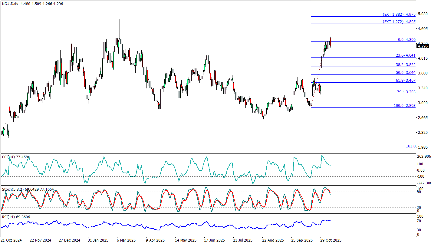 ABD doğal gaz vadeli işlemleri bugün, son günlerde Mart’tan bu yana görülen en yüksek seviyelere tırmandıktan sonra 4,5 $ civarından hafif kâr realizasyonuyla geri çekilerek 4,3 çevresine doğru düzeltme yaptı. Fiyattaki bu kısa vadeli geri adıma rağmen, sekiz büyük LNG tesisine günlük ortalama 17,4 milyar ft³’ü aşan rekor akışlar, Avrupa’nın Rus gazına alternatif arayışı ve Asyalı yatırımcıların uzun vadeli ABD kontratlarına yönelmesi doğal gazı orta vadede destekleyen ana unsurlar olmaya devam ediyor. Diğer taraftan, üretimin 108,7 seviyelerine yükselmesi ve depoların mevsim normallerinin yaklaşık %4 üzerinde olması, arz tarafında rahat bir tablo çizerek yükselişleri sınırlayan temel faktör konumunda. EIA’nın, enerji ihtiyacı artan veri merkezleri ve LNG ihracatındaki genişleme ile hem arzın hem talebin 2025–2026 döneminde yeni zirvelere çıkacağı beklentisi korunurken bugünkü geri çekilmeye rağmen doğal gazda yapısal talep hikâyesinin ve orta–uzun vadeli pozitif temelin korunduğuna işaret ediyor.
