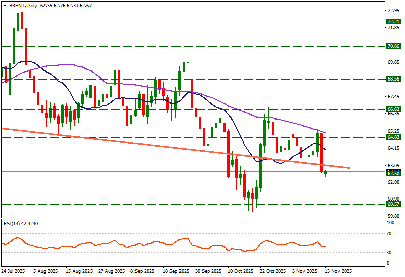 İki gün 63.93 bölgesinden başlayan yükselişler brent petrolü 65.29 seviyesine kadar taşıyarak 50 günlük hareketli ortalamayı direnç olarak test etmişti. Petrol üretimindeki artış gündemi ile brent petrol geçtiğimiz gün yaklaşık 3.5 dolar düşerek 62.50 desteğine geriledi. Yeni işlem gününde 62.50 desteği sakin şekilde test edilmeye devam ediyor. Bu desteğin güç kaybetmesi durumunda 60.57 bölgesi bir sonraki destek olarak takip edilebilir.