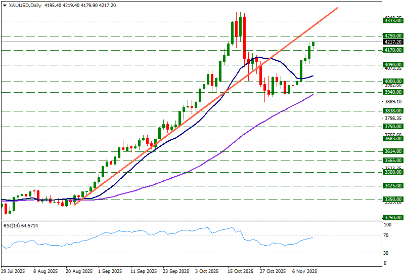 Yeni haftaya 4000 bölgesinde giriş yapması sonrasında hafta boyunca yükselen ons altın 4170 direncini aşarak 4219 seviyesine kadar yükselişler gördü. Günlük grafik görünümünde ikili zirve oluşumu ihtimali değerlendirilebilir. Ancak bu yükselişler düzeltme hareketi sonrasında yeni zirvelerin habercisi de olabilir. Temkinli olarak takip etmekte fayda var.