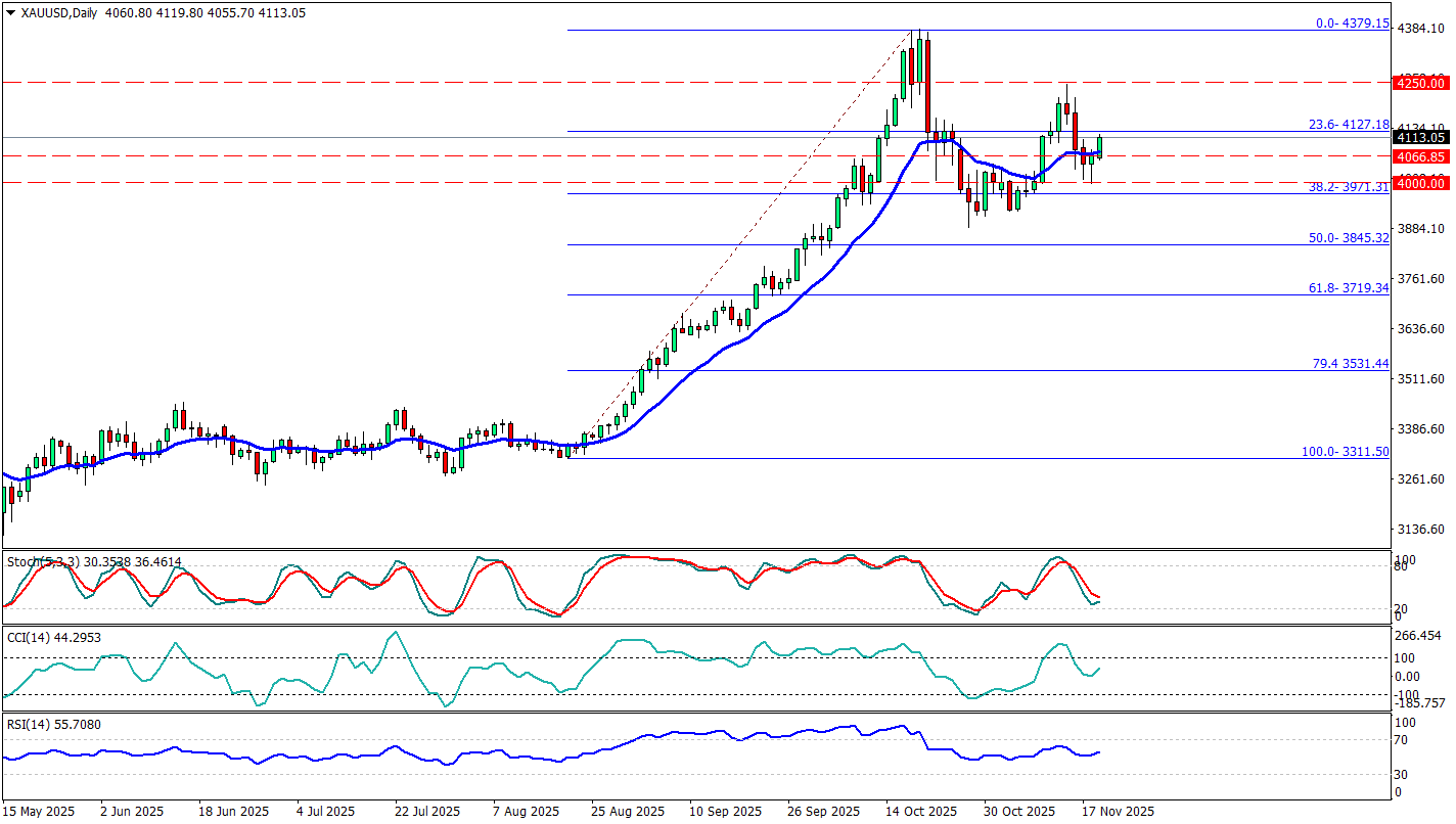 Ons Altında son haftalarda doların güçlenmesi ve Aralık toplantısında faiz indirimi ihtimalinin fiyatlamalarda zayıflamasıyla birlikte kâr realizasyonları geldi ve fiyat 4.380 civarındaki zirveden %10’a yakın geri çekilerek kısa süreliğine 4.000 doların altını test etti; bu baskının ana sebebi artan reel faizler ve “şimdilik bekle-gör” moduna geçen Fed beklentileri oldu. Ancak dün açıklanan zayıf ABD istihdam verileri ve küresel piyasalarda yeniden artan riskten kaçış eğilimiyle birlikte altın, grafikte de göründüğü üzere 4.000 psikolojik desteği üzerinden tepki alarak bugün 4.100–4.120 bandına toparlanmış durumda; bu hareket, tahvil faizlerindeki geri çekilme ve akşam yayımlanacak Fed tutanakları ile geciken ABD verilerine yönelik temkinli duruşla destekleniyor. Orta-uzun vadede ise Dünya Altın Konseyi verilerine göre merkez bankalarının rezerv çeşitlendirme amacıyla alışları tarihi seviyelerde kalmaya devam ediyor. Altın günü 4127 direncinin üzerinde kapatabilirse haftanın kalan günlerinde burada bir kalıcılık sağlayabilir.