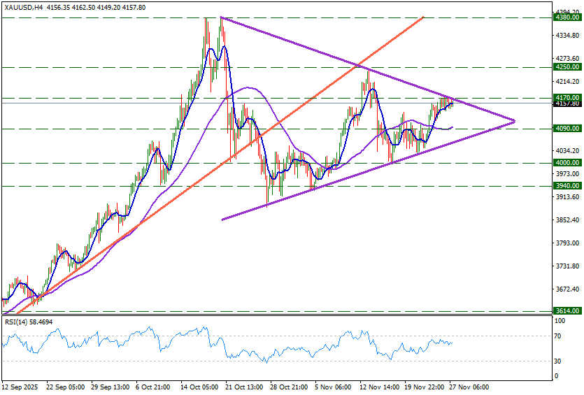 4 saatlik mumlarla incelediğimiz ons altın grafiği üçgen formasyonun üst bandındaki seyrini koruyor. Yükselişler 8 mumluk ortalamayı üçgen formasyonun üst bandına yaklaştırdı. İlerleyen zamanda fiyatlamaların üst bandı kırması ve 4170 direncini aşması durumunda yukarı yönlü fiyatlamalar volatil şekilde güç kazanabilir.