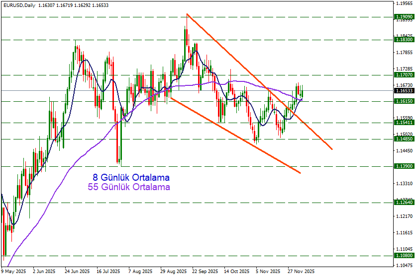 Yukarı yönlü hareketlerde öncelikli olarak 1.1707 bölgesi direnç oluşturabilir. Aşağı yönde ise 1.1615 bölgesi destek oluşturabilir.