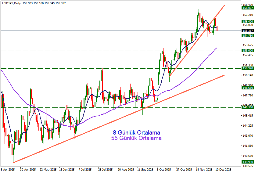 Yen lehine baskıların devamında 154.75 desteği gündeme gelebilir.