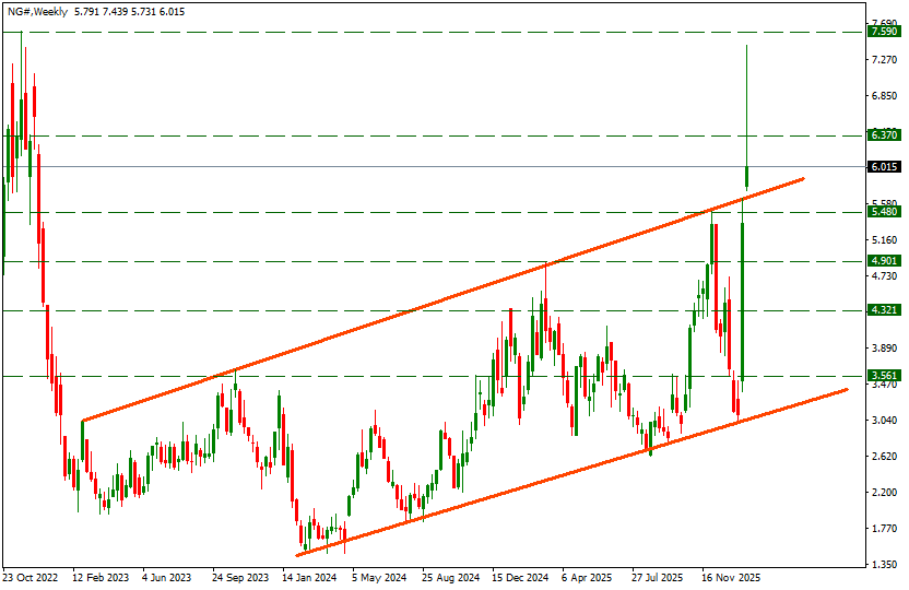 Güçlü yükselişlerin bir kısmını geri veren doğalgaz 6.01 bölgesinde fiyatlanıyor.