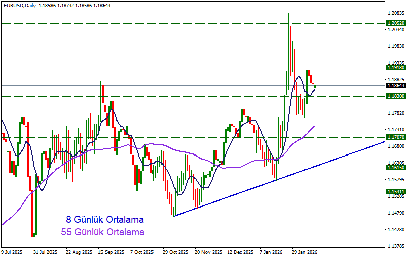 Yukarı yönlü tepkilerde 1.1918 bölgesi tekrar direnç oluşturabilir. Aşağı yönlü hareketlerde ise 1.1830 bölgesi destek oluşturabilir.